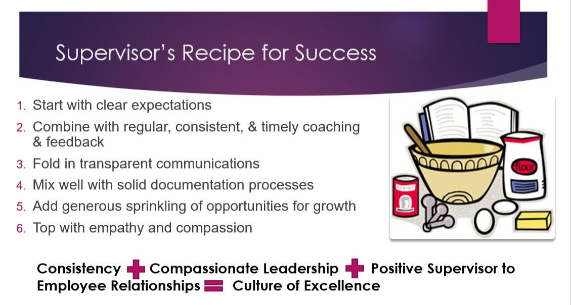 At the heart of almost every employee conflict is a misunderstanding and breakdown in communication. I have successfully resolved over 50+ lower level investigations and assisted with the resolution of 50+ complex cases. The most effective strategy to resolve supervisor to employee conflicts is by building strong relationships from the moment an employee is hired.Akin to baking the perfect cake, forging strong leader to employee relationships comes down to having the right ingredients.Click here to learn more about secrets to sweet supervisor success.